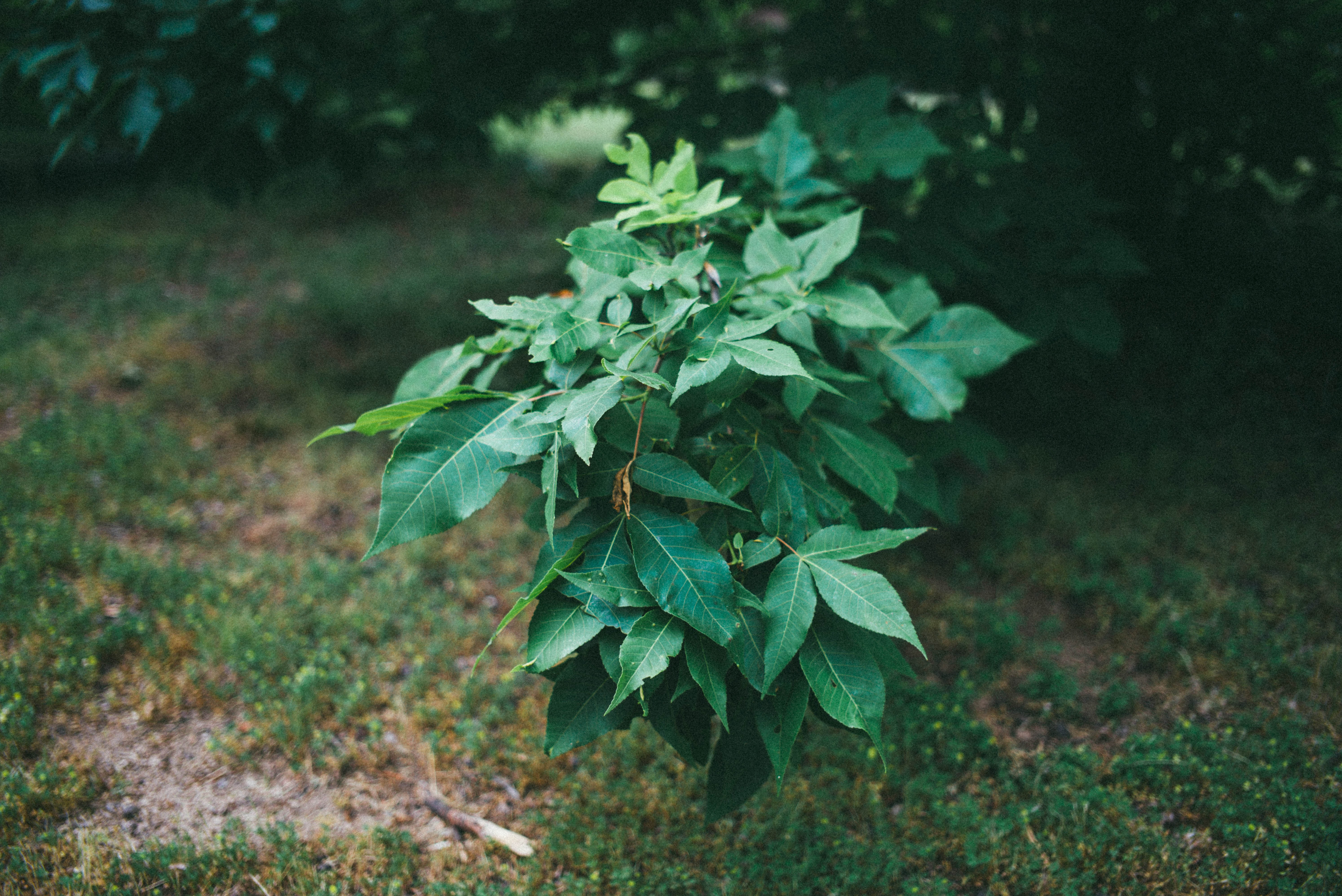 A vibrant cluster of green leaves emerges prominently from the earthy ground, capturing a moment of nature's tranquility. The soft, diffused lighting accentuates the rich textures of the leaves, while the shadowy background creates an intimate, serene mood. This composition invites the viewer to pause and appreciate the beauty of simple, organic life.