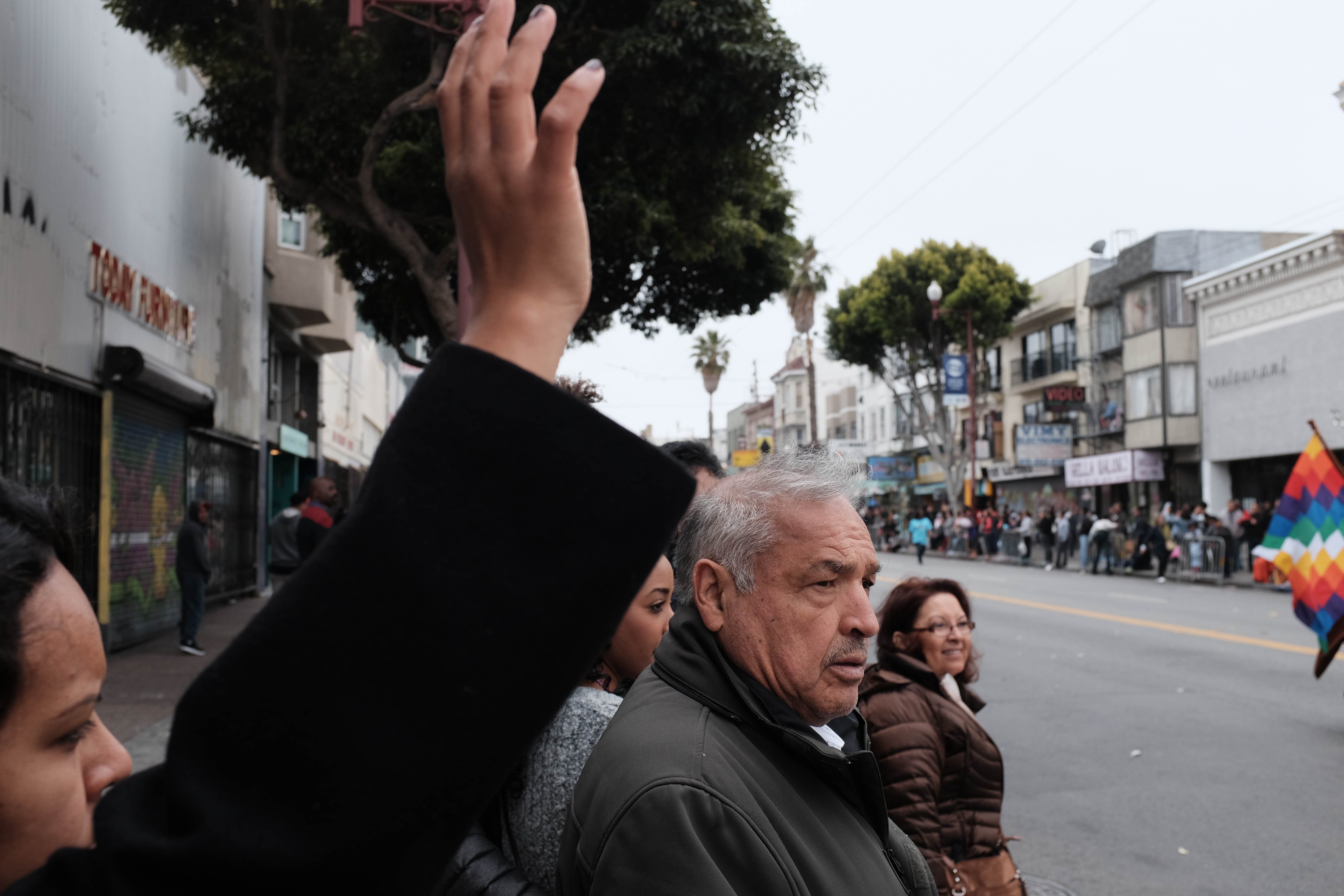 A diverse gathering captures a sense of community as people await an event. The soft, muted lighting enhances the thoughtful expressions of the subjects, contrasting with the fleeting excitement in the distance. A raised hand adds a dynamic touch, inviting a sense of interaction amidst the calm anticipation.