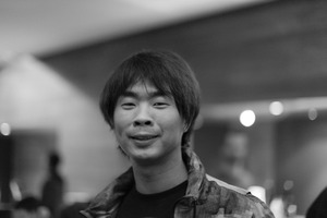 The photograph captures a young man smiling warmly, exuding a sense of approachability and joy. The soft focus and muted lighting in the background create an intimate atmosphere, emphasizing his expression against a serene, blurred backdrop. His casual attire complements the relaxed mood, inviting a deeper connection with the viewer.