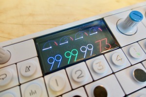 The photograph captures a close-up view of a sleek electronic device, highlighting a vibrant display adorned with colorful numeric readings. The soft lighting enhances the modern design, evoking a sense of technological intrigue that invites exploration. The overall composition balances the device's functional elements with its artistic appeal, creating a dynamic visual rhythm.