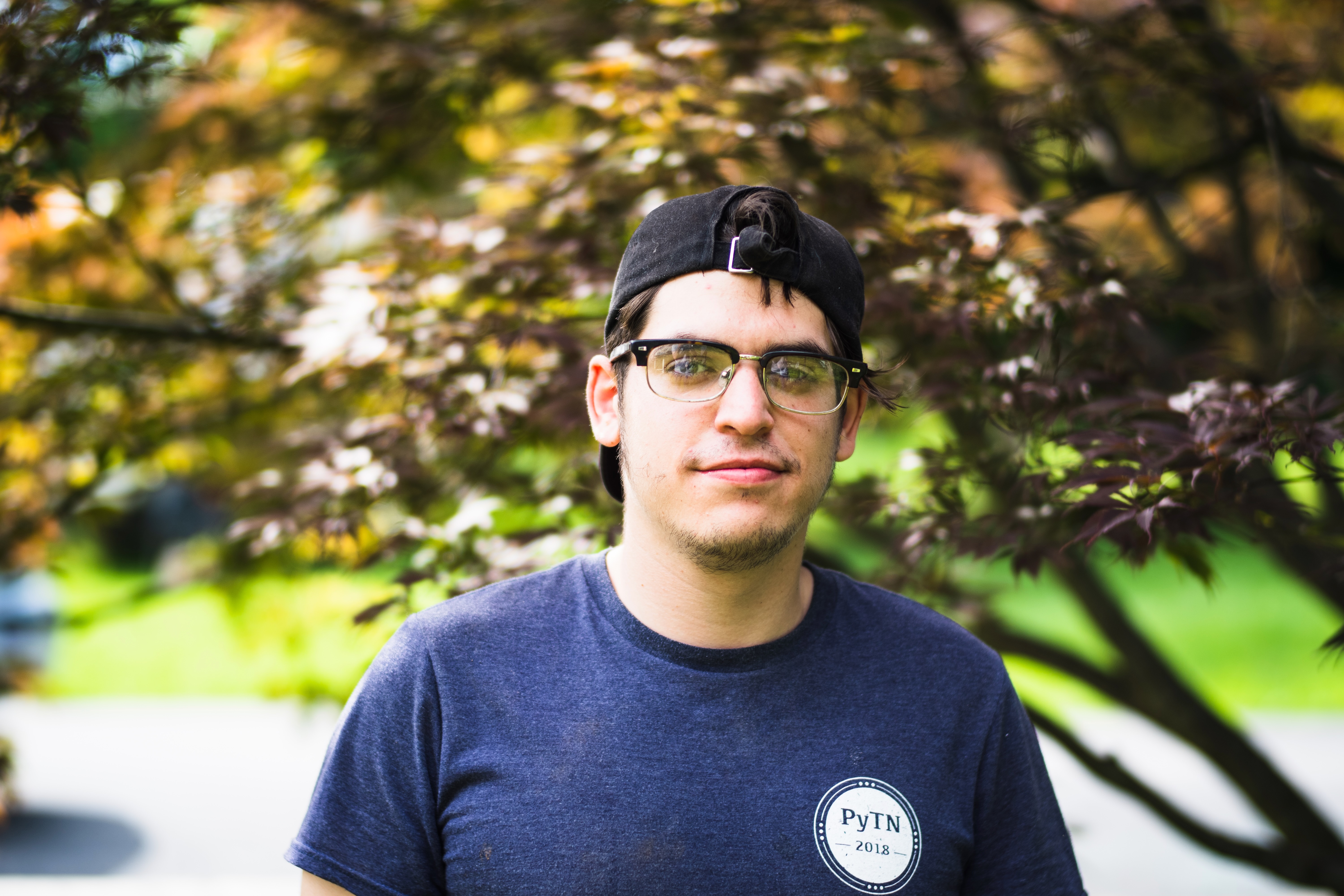 The photograph captures a young man standing calmly amid vibrant green foliage, subtly illuminated by soft, natural light. His contemplative expression suggests a moment of introspection, enhanced by the blurred background that emphasizes his presence. The overall mood is serene, evoking a sense of peace and connection with nature.