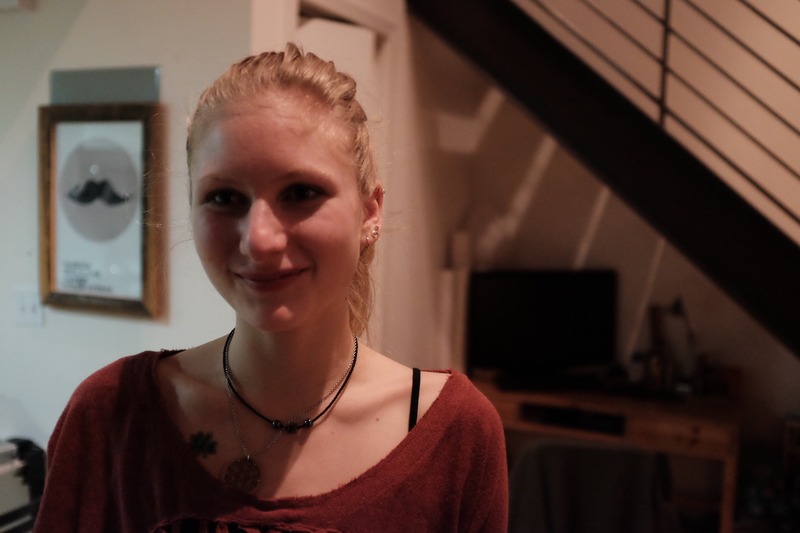The photograph captures a young woman with a gentle smile, exuding a calm and approachable aura. Bathed in soft, warm lighting, the composition highlights her relaxed demeanor against a backdrop of muted indoor tones, creating an intimate and inviting atmosphere.
