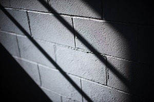 In this photograph, shadows stretch across a textured gray wall, creating a striking contrast between light and dark. The geometric lines of the shadows evoke a sense of depth, while the soft, muted lighting enhances the mood of quiet introspection. The composition draws the viewer's eye along the surface, inviting contemplation of the interplay between form and absence.
