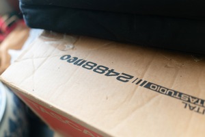 This photograph captures a close-up of a cardboard box, partially obscured by a black bag, hinting at forgotten stories and untold memories. The soft, natural lighting creates a serene yet melancholic atmosphere, emphasizing the box's worn texture and the weight of neglect. The composition, with its overlapping elements, evokes a sense of depth and curiosity, inviting viewers to ponder what lies within the layers of everyday life.
