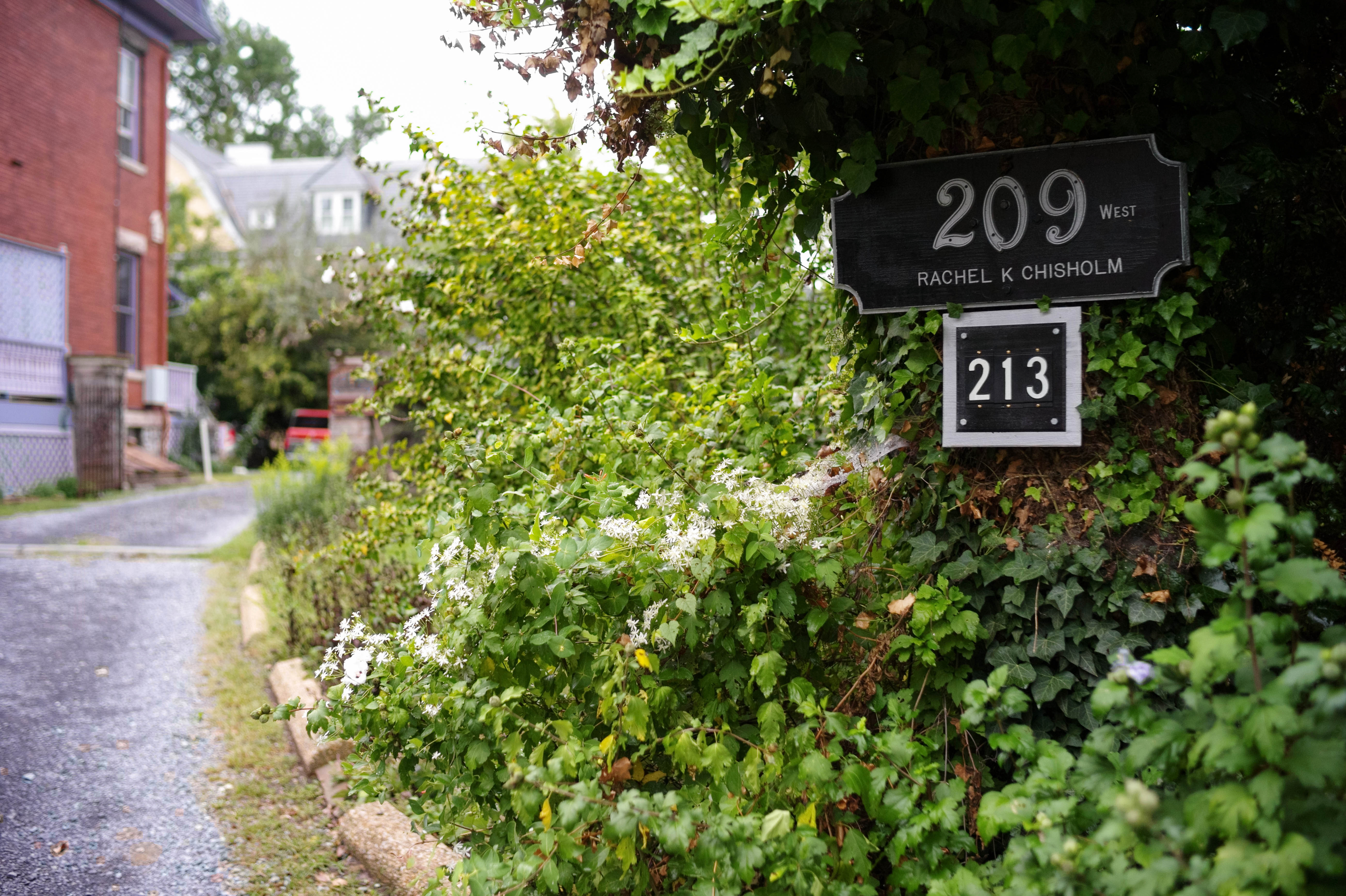 This photograph captures a serene alleyway bordered by lush greenery, inviting exploration. The soft, diffused lighting creates a tranquil mood, while the contrasting textures of brick and foliage add depth to the composition. The house numbers, partially obscured by plants, suggest a sense of mystery and intimacy within this secluded space.