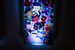 This vibrant artwork showcases a lively assembly of cartoon characters, radiating joy and energy. The use of bright colors against a softly lit background creates a cheerful, inviting atmosphere, perfect for capturing the exuberance of childhood. The composition is playful and dynamic, with characters engaging in various activities, evoking a sense of community and happiness.