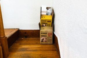 In a quiet corner, two neatly stacked Yamaha boxes sit against a textured white wall, hinting at creativity and future sounds yet to emerge. The warm wooden floor reflects a soft light, creating a cozy atmosphere that contrasts with the precise organization of the boxes. This still life captures a moment of pause, inviting curiosity about the treasures hidden within.