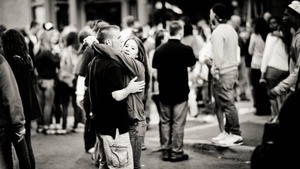 Joyful Embrace in a Crowd