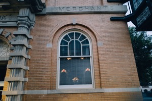 This photograph captures a vintage window of a historic building, adorned with charming interior lamps that cast a warm glow through the blinds. The texture of the brick and architectural elements evoke a sense of nostalgia and stability, while the muted lighting suggests an evening ambiance that invites introspection. The window stands as a portal to a bygone era, blending history with quiet allure.