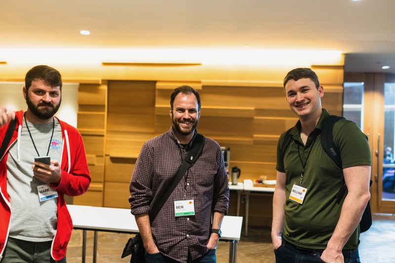 Three individuals stand together in a modern, warm-lit space, exuding a sense of camaraderie. Their relaxed postures and genuine smiles create an inviting atmosphere, highlighting a moment of connection and shared experience. The soft lighting and clean lines of the background contribute to a professional yet approachable mood.