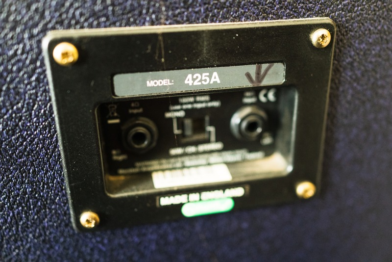 This close-up photograph captures the detail of an electrical panel, model 425A, set against a textured dark background. The bright metallic screws and sparsely lit ports create a sense of industrial authenticity, contrasting the smoothness of the surrounding material. The composition invites curiosity, hinting at the unseen connections and sound that lie behind the scenes.