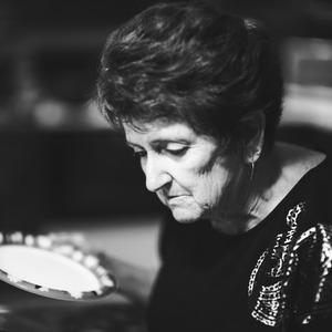 In this intimate black-and-white photograph, an elderly woman gazes down thoughtfully, her expressive profile illuminated by soft, diffused light. The composition emphasizes her contemplative mood, capturing a moment of stillness as she holds a plate, suggesting a deeper narrative of memory or nostalgia. The blurred background enhances the focus on her serene expression, evoking a sense of warmth and reverence for time spent in quiet reflection.