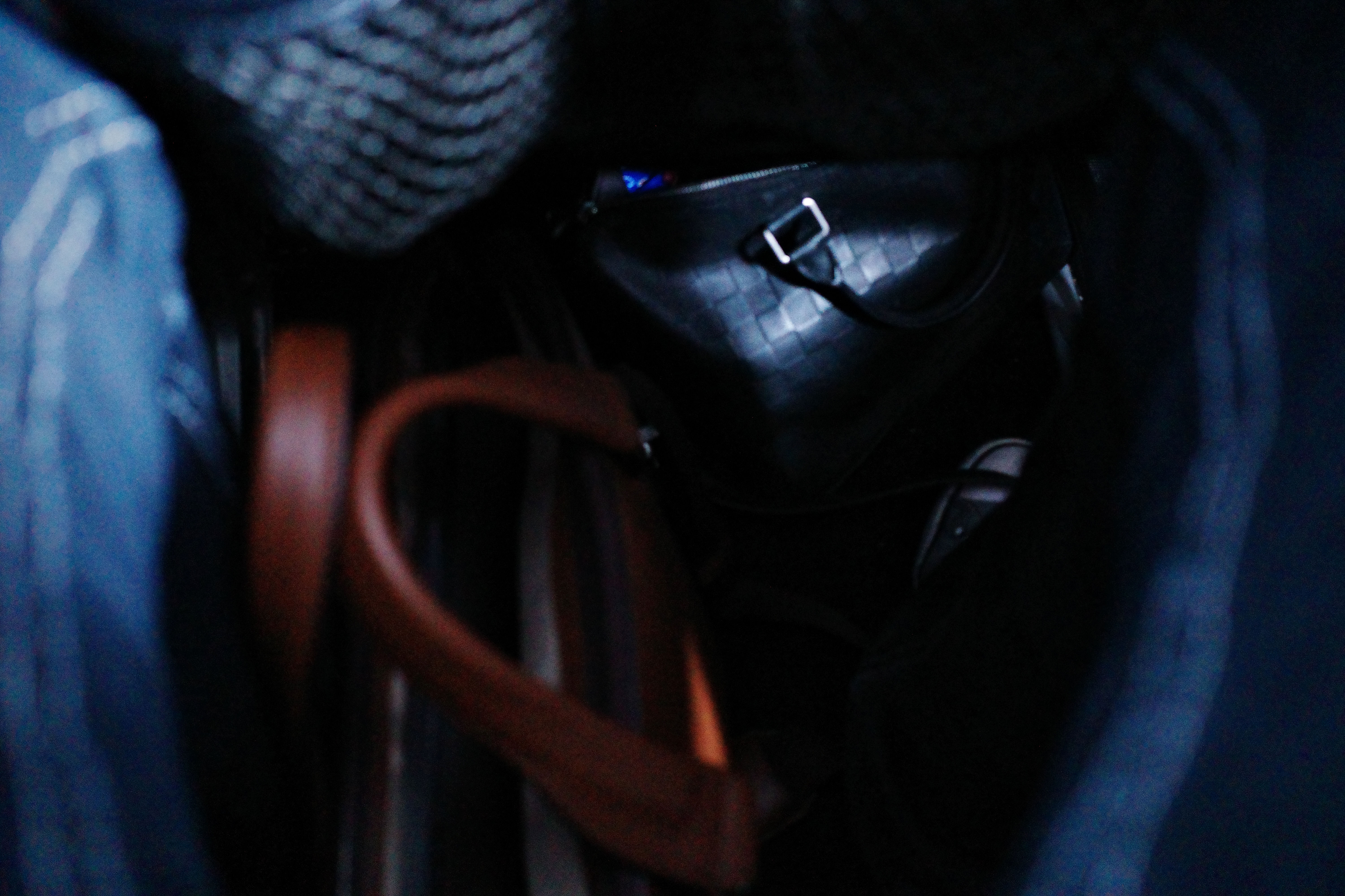 This photograph captures an intimate glimpse into the depths of a bag, revealing various straps and handles intertwined amidst shadows. The dimly lit scene evokes a sense of mystery and personal space, as if exploring one's private world. The focus on the assortment of items hints at stories waiting to be uncovered, emphasizing the chaotic beauty of everyday life.