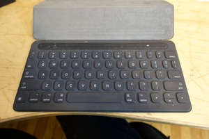 This photograph captures a sleek, dark keyboard resting on a light wooden surface, inviting a sense of calm focus. The muted tones and subtle lighting highlight the keyboard's minimalist design, while a hint of dust suggests stories of past uses. The composition draws the viewer into its simplicity, evoking a mood of quiet productivity.