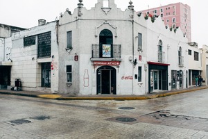 This photograph captures a charming corner store with a distinctive architectural design, highlighted by soft, diffused lighting that suggests a cloudy day. The muted colors of the building contrast with the vibrant Coca-Cola signage, evoking a nostalgic yet lively atmosphere. The street is quiet, with hints of life visible as pedestrians navigate the wet pavement, adding a sense of intimacy to the scene.