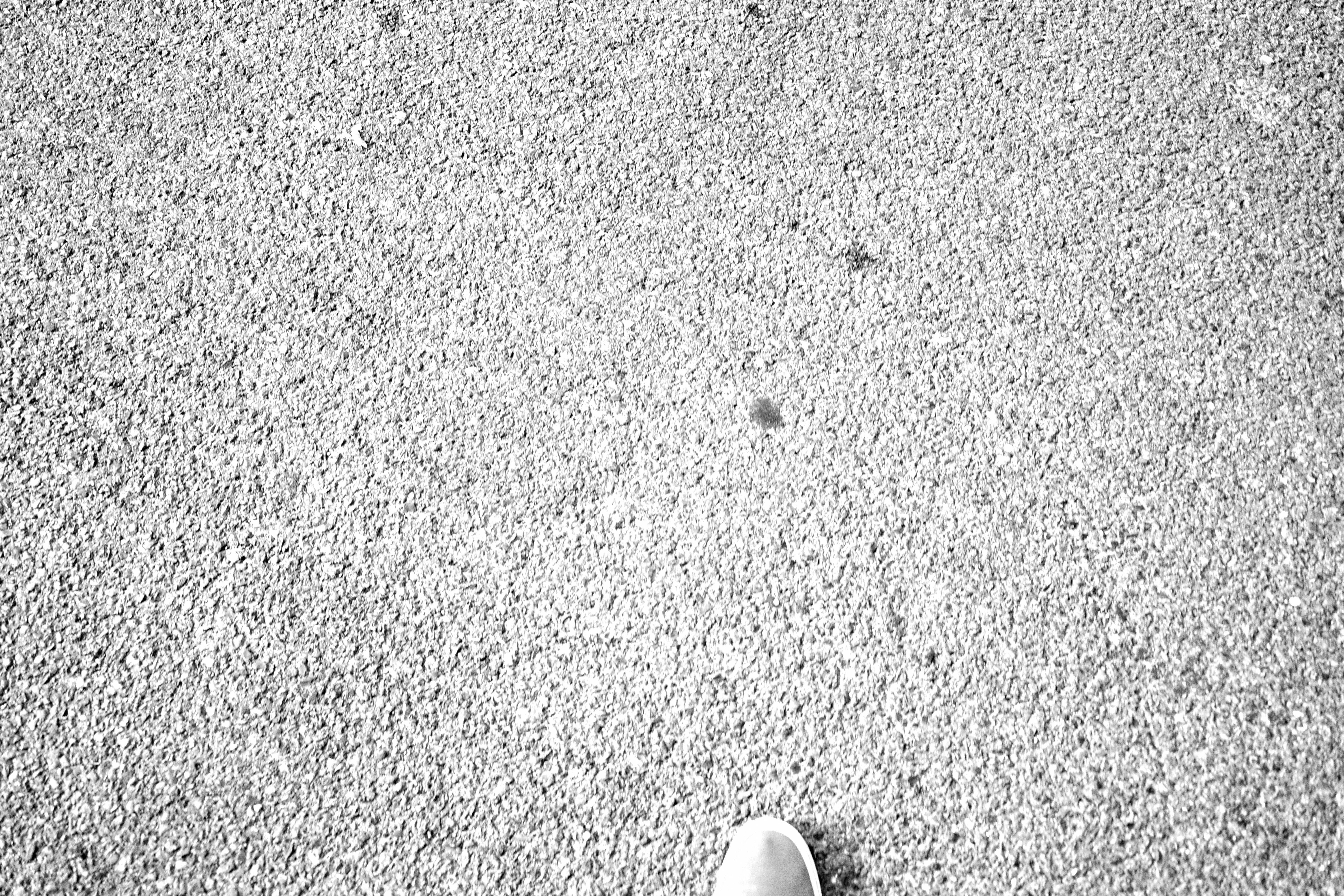 The photograph captures a close-up view of a textured surface, with a single footstep at the bottom. The monochromatic tones lend a sense of solitude and introspection to the scene, inviting viewers to ponder the journey ahead. Soft lighting enhances the intricate details of the ground, creating a contemplative mood.