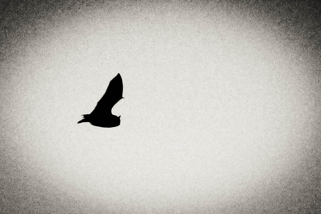 A solitary bird glides gracefully across a soft, illuminated backdrop, captured in stark silhouette. The image evokes a sense of freedom and solitude, emphasizing the delicate balance between light and shadow. Its minimalist composition draws the eye to the bird's elegant form, suggesting a serene moment suspended in time.