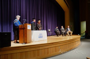 Graduation Ceremony Under Purple Drapes