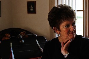 In a softly lit room, an older woman gazes thoughtfully to the side, her expression serene and contemplative. The warm tones of the interior create a nostalgic atmosphere, while the subtle play of light accentuates her features and the gentle curves of her pose. Behind her, a rustic, partially obscured object hints at a life filled with stories, inviting the viewer to ponder the moments captured in this intimate setting.