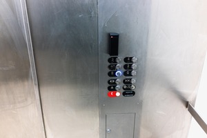 A close-up of an elevator control panel, its sleek metal surface reflecting soft, diffused light. The buttons, arranged in an orderly fashion, evoke a sense of modern minimalism while hinting at the anticipation of movement. The cool tones of steel create an atmosphere of calmness, inviting one to pause before the journey begins.