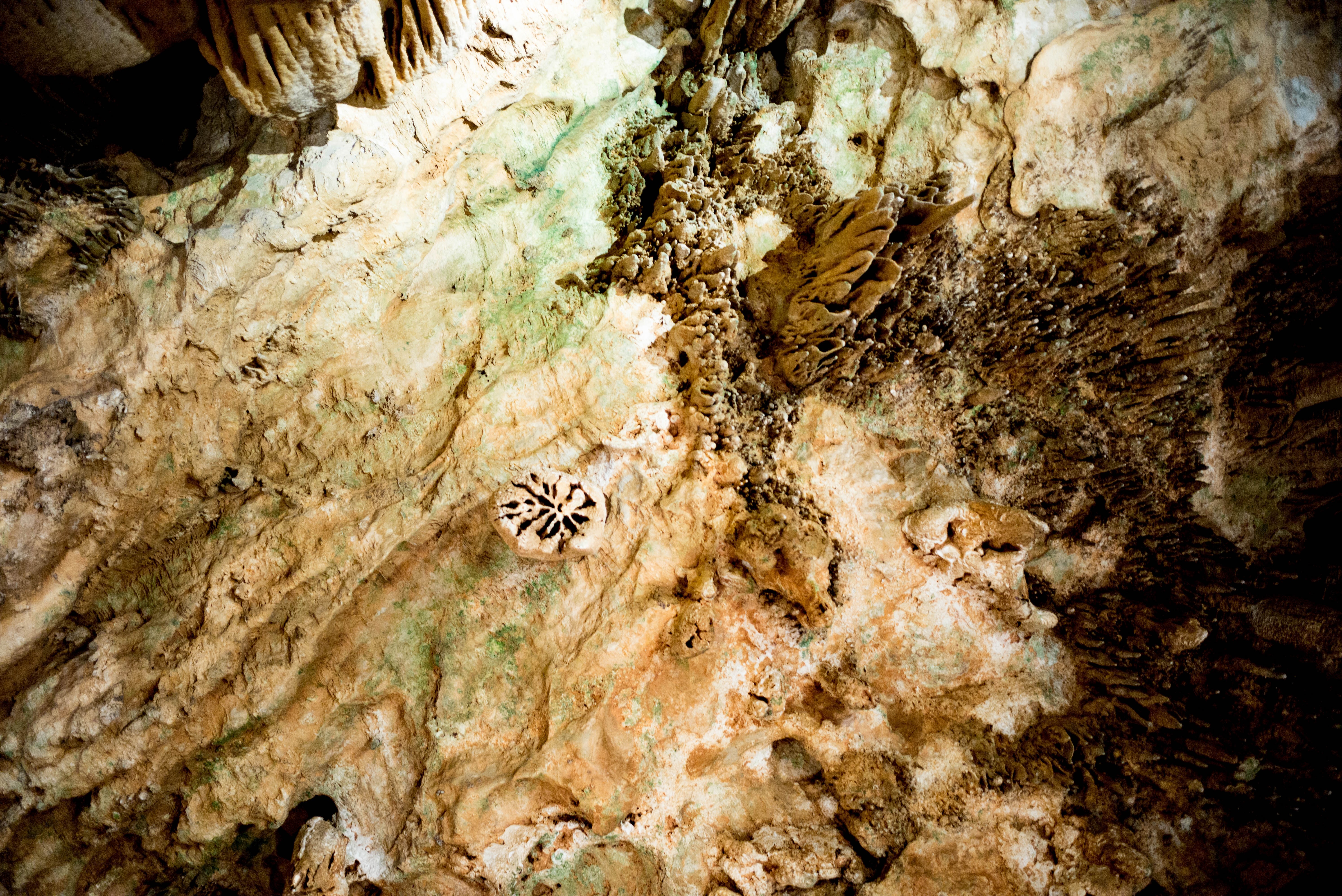 This photograph captures the intricate textures of a cave wall, rich with mineral patterns and natural formations. The play of soft lighting accentuates the earthy tones and reveals a complex world hidden beneath the surface, evoking a sense of wonder and exploration. The composition draws the eye upward, inviting viewers to imagine the vastness beyond the frame.