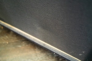 This photograph captures a close-up of a textured surface, featuring subtle lines and patterns that create a sense of depth and intrigue. The muted color palette, predominantly dark with hints of light, evokes a mood of calm sophistication. The composition draws the viewer’s eye along the edge, highlighting the contrast between the smooth and textured elements.