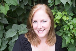A woman with soft, flowing hair smiles warmly against a backdrop of lush green foliage. The gentle, diffused lighting enhances the serene mood, creating a harmonious connection with nature. Her relaxed expression and the vibrant greenery evoke a sense of joy and tranquility.