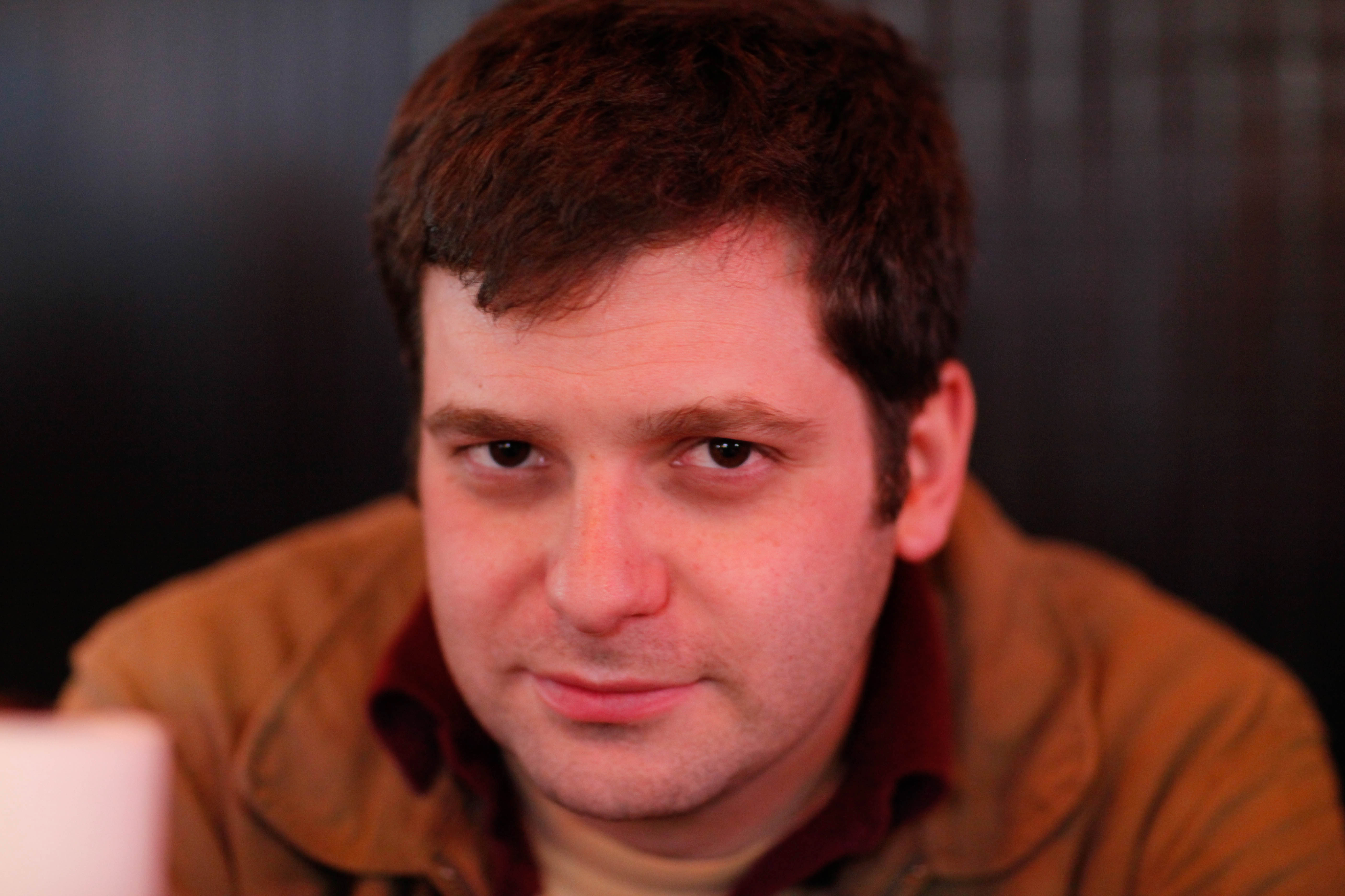 A contemplative man gazes directly at the camera, exuding a mix of seriousness and warmth. Soft, diffused lighting highlights his facial features against a dark background, creating an intimate atmosphere. The overall mood is reflective, inviting viewers to ponder his thoughts.