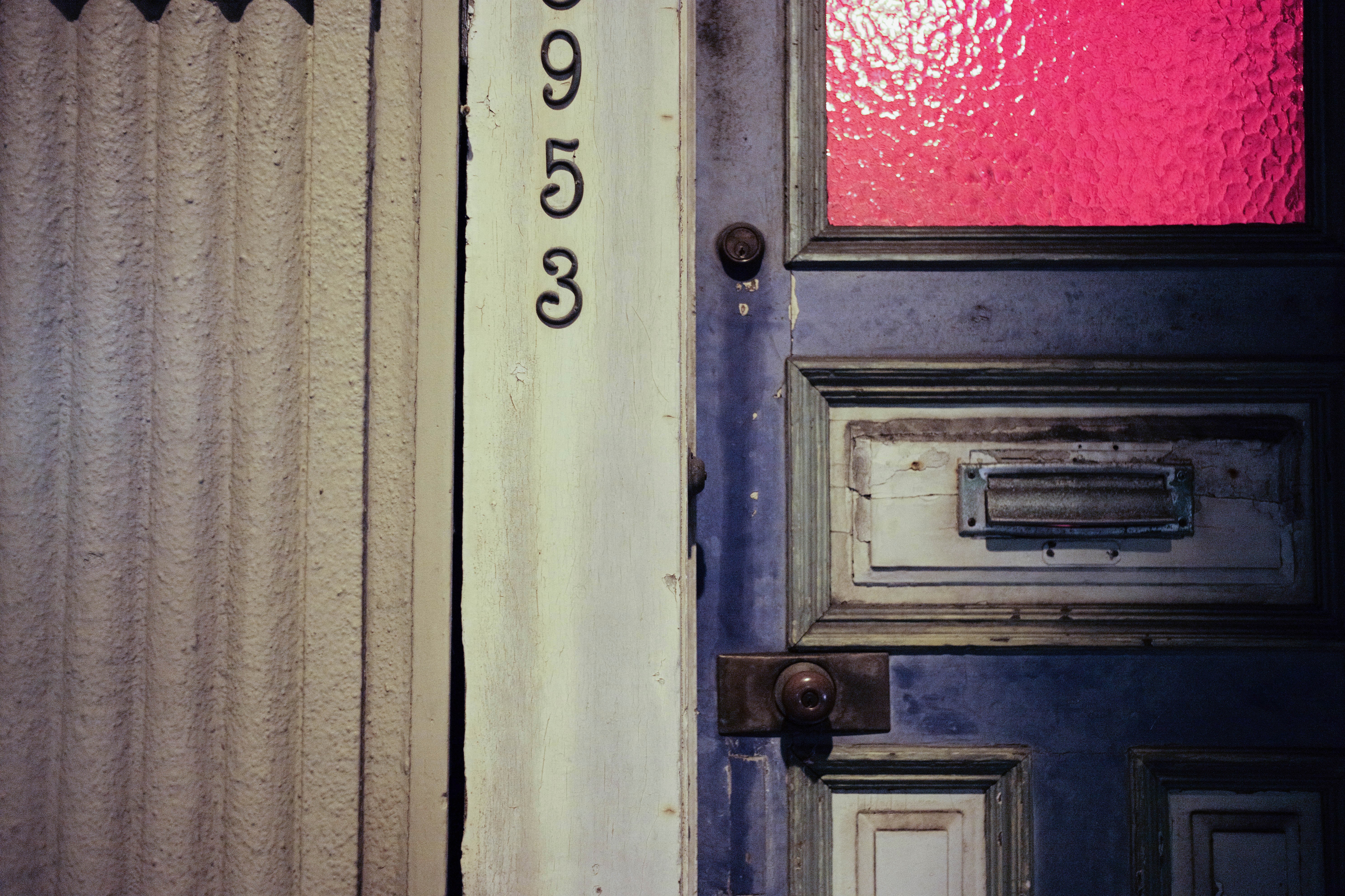 The photograph captures a weathered door framed by textured walls, evoking a sense of nostalgia and intrigue. The soft glow of a ruby-colored glass panel casts an inviting yet enigmatic light, hinting at stories hidden within. The composition, focusing on the door's aged details and the stark contrast of textures, invites contemplation on what lies beyond.