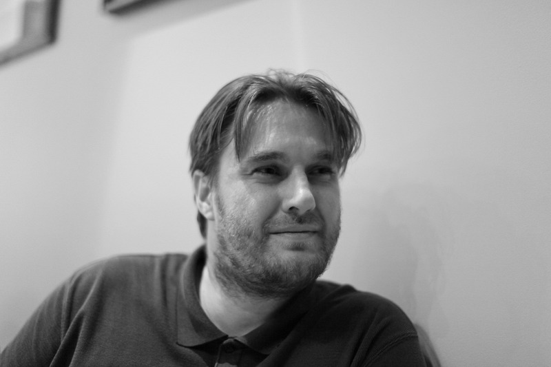 Captured in soft black and white, the subject reflects a serene yet thoughtful expression, casting a mood of introspection. The gentle lighting highlights the contours of his face, enhancing the texture of his tousled hair and beard. The composition focuses on the subject against an unobtrusive background, inviting viewers into a moment of quiet contemplation.