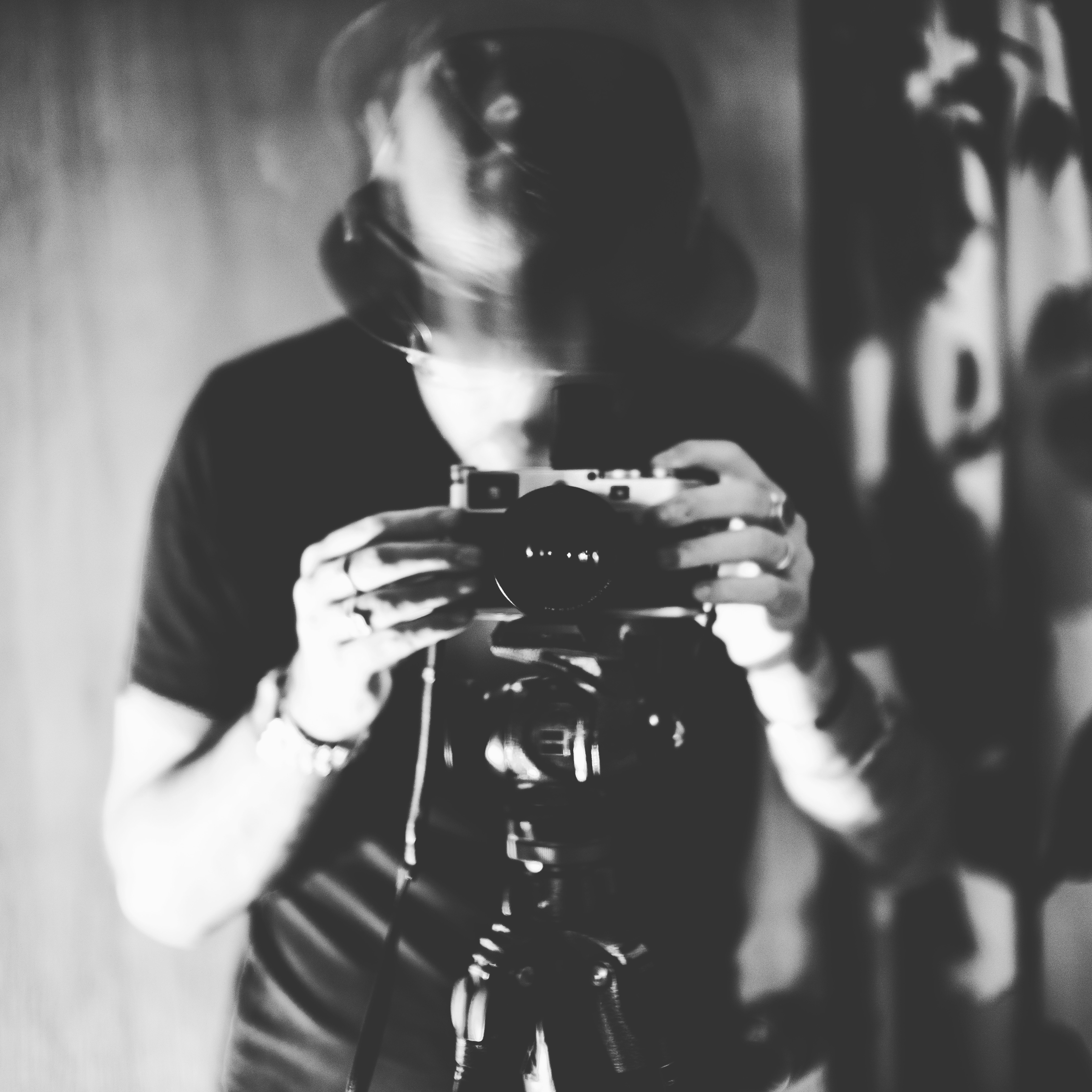 A blurred self-portrait captures the essence of a photographer immersed in their craft. The soft lighting and monochromatic tones evoke a sense of introspection and creativity, while the motion hints at a fleeting moment. The dynamic composition draws the viewer into a world of artistic exploration and self-discovery.