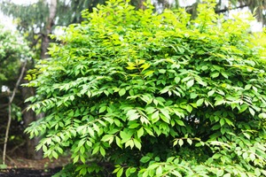 The photograph captures a dense, healthy shrub bursting with vibrant green leaves, creating a sense of vitality and tranquility. Soft, diffused lighting highlights the various shades of green, adding depth and dimension while evoking a peaceful, serene mood. The composition is rich and full, inviting the viewer to immerse themselves in the lushness of nature's beauty.