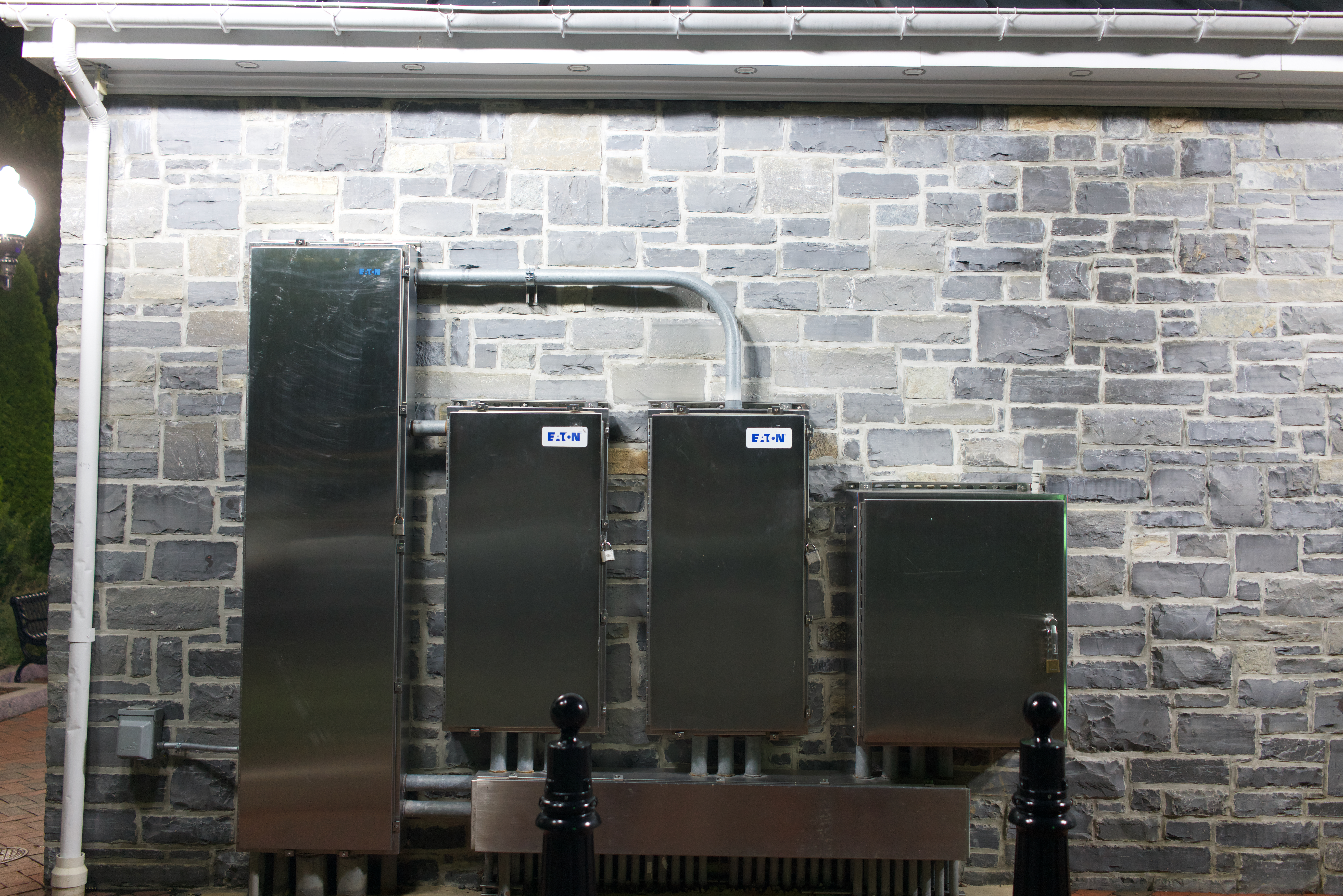 Industrial Contrast on Stone Wall