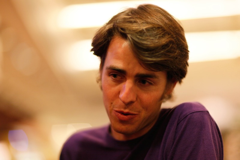 In this intimate capture, a young man wears a contemplative expression, his gaze slightly off to the side as if lost in thought. The warm, soft lighting creates a cozy atmosphere, while the blurred background hints at a lively setting. His casual purple shirt contrasts gently with the golden bokeh, adding to the relaxed yet engaging mood of the photograph.