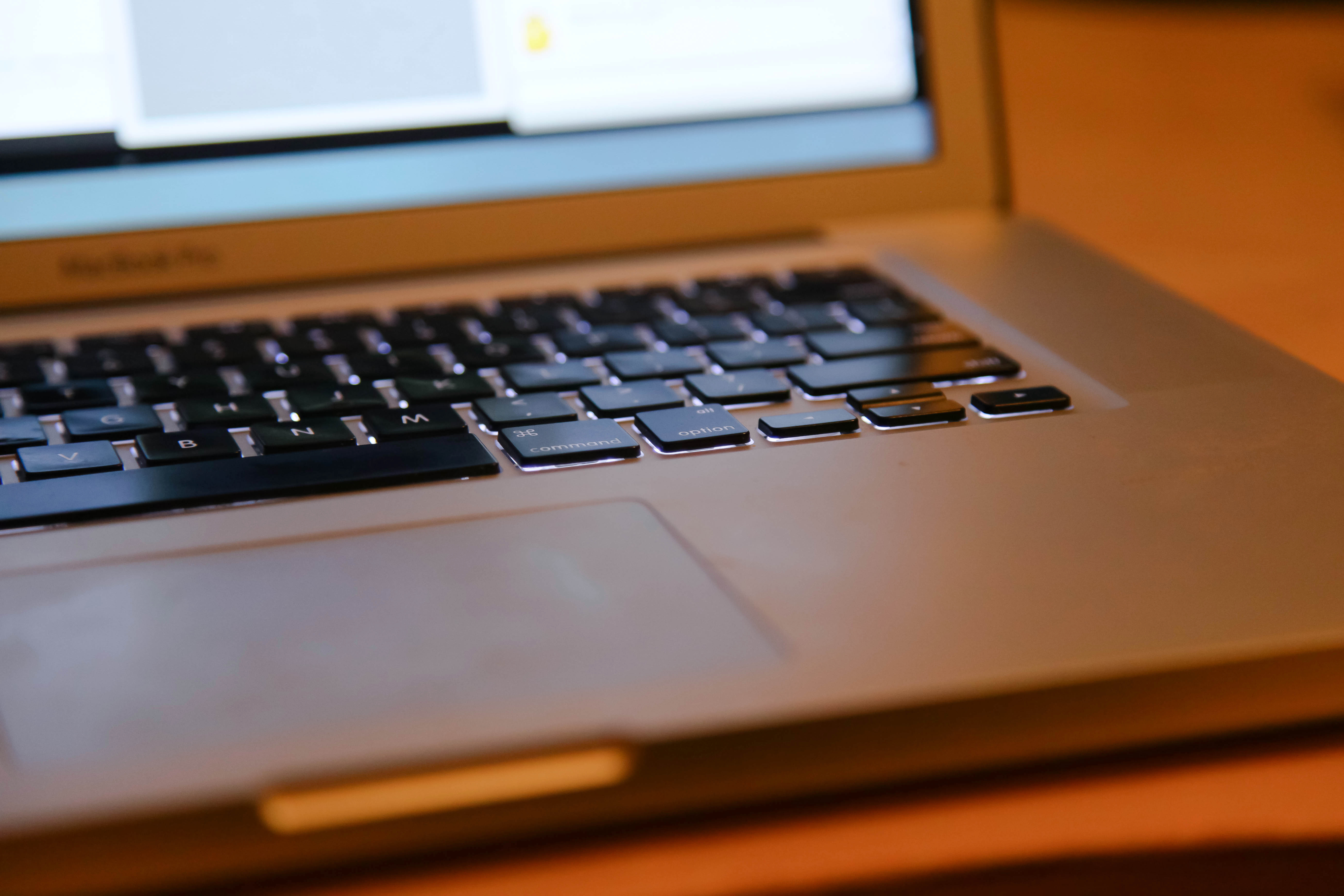 This close-up shot of a laptop keyboard conveys a sense of intimacy and focus, illuminated by soft, warm lighting. The shallow depth of field draws attention to the textured keys, hinting at the creative possibilities that lie within the device. The gentle blur of the screen background adds a contemplative mood, inviting the viewer to imagine the thoughts behind the work being done.