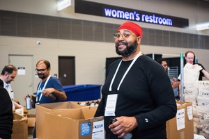 In a lively indoor setting, a diverse group of volunteers work together amid cardboard boxes, showcasing a spirit of collaboration and community involvement. The warm overhead lighting creates an inviting atmosphere, highlighting the expressions of joy and purpose on the faces of those engaged in their tasks. The image captures a moment of connection, illustrating the camaraderie that arises in shared efforts for a common cause.