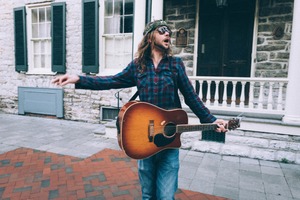 A spirited musician passionately plays his guitar on a charming cobblestone street, dressed in a plaid shirt with a carefree style. The warm light highlights his expressive face and vibrant surroundings, creating a lively yet intimate atmosphere. The juxtaposition of historical architecture in the background adds depth to the scene, enhancing the authenticity of his performance.