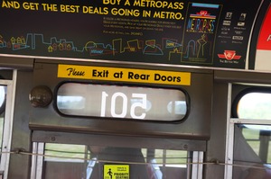 This photograph captures the interior of a subway train, focusing on the overhead signage and the emergency exit requirements. The warm, natural light filters in, creating a contrasting atmosphere against the cool metallic tones of the train. The composition emphasizes the mundane yet essential elements of daily commuting, evoking a sense of routine and urban life.