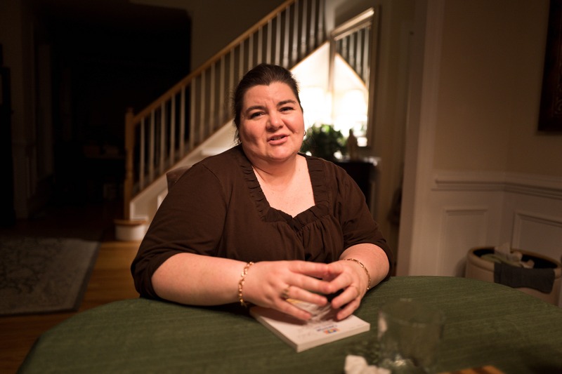 Captured in warm, inviting light, a woman sits at a green table, her hands softly clasped as she engages with the viewer. The ambiance conveys a sense of intimacy and calm, emphasized by the shadowy background and the gentle glow from the window. The composition draws attention to her expressive face, suggesting a moment of connection and thoughtful dialogue.