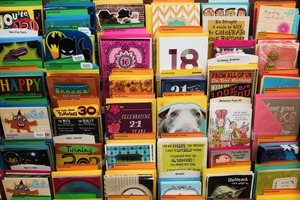 The photograph showcases a vibrant display of colorful birthday cards, each featuring unique designs and messages. The lively array creates a cheerful and festive atmosphere, inviting emotions of joy and celebration. The well-organized composition emphasizes the diversity of sentiments captured in the cards, illuminated by bright lighting that enhances their vivid hues.