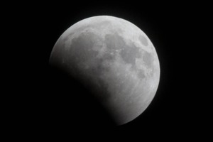 The photograph captures a partially eclipsed moon, showcasing its textured surface bathed in soft, silvery light against a deep black sky. The crescent shape creates an air of mystery and wonder, inviting viewers to contemplate the vastness of the cosmos. The stark contrast between the moon and the void emphasizes its ethereal beauty, evoking a sense of tranquility and awe.